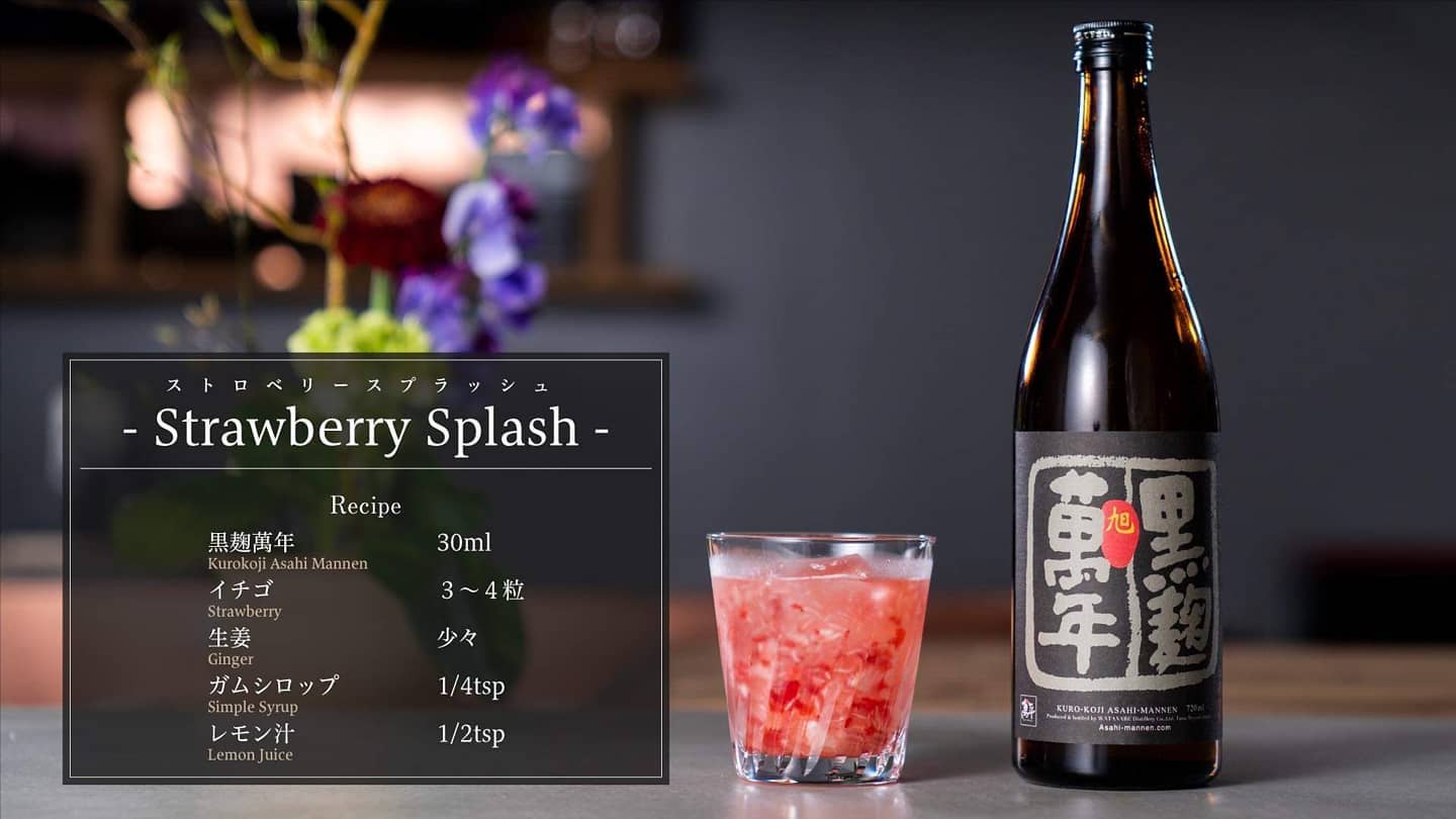 今回、渡邊酒造場の焼酎から「黒麹萬年」を使って、イチゴをあわせた「Strawberry Splash」というカクテルが提案されています。